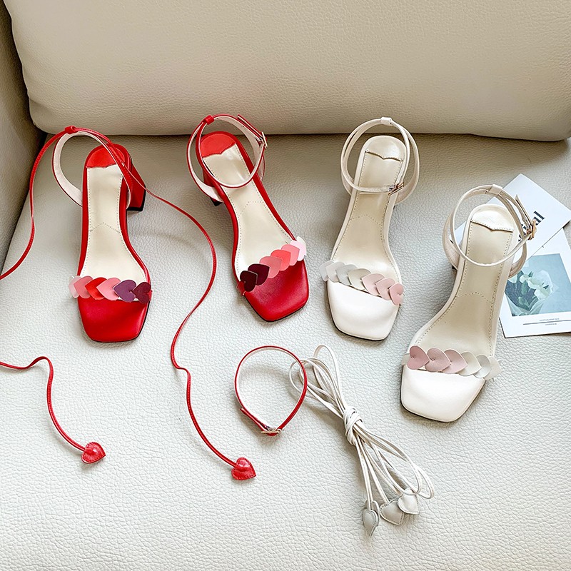 爱心少女一字绑带鞋子